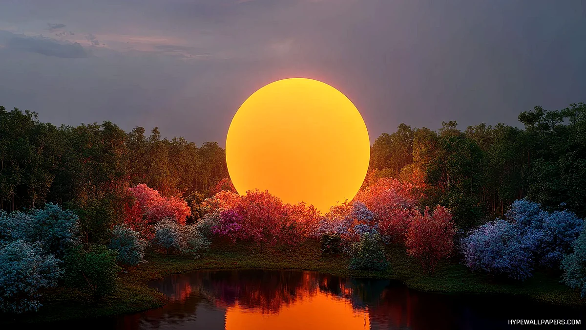 Sunset Glow Over Colorful Forest and Lake