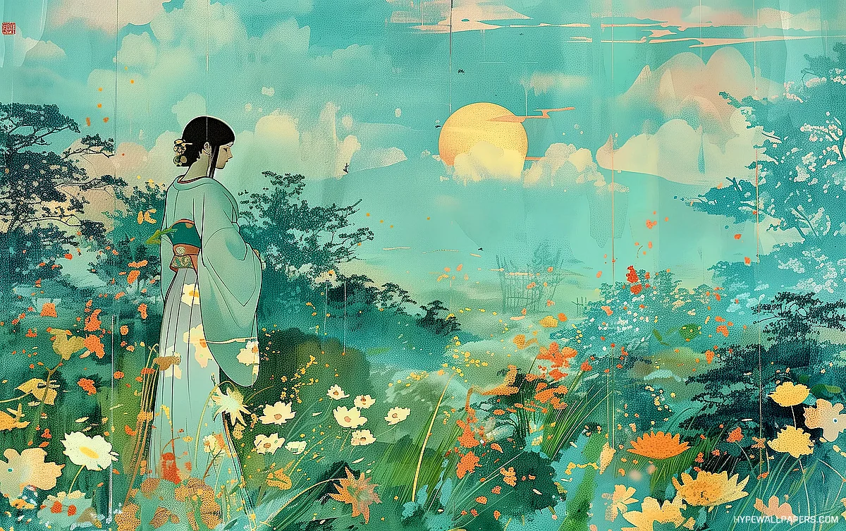 Red Moon Anime Girl - 4K