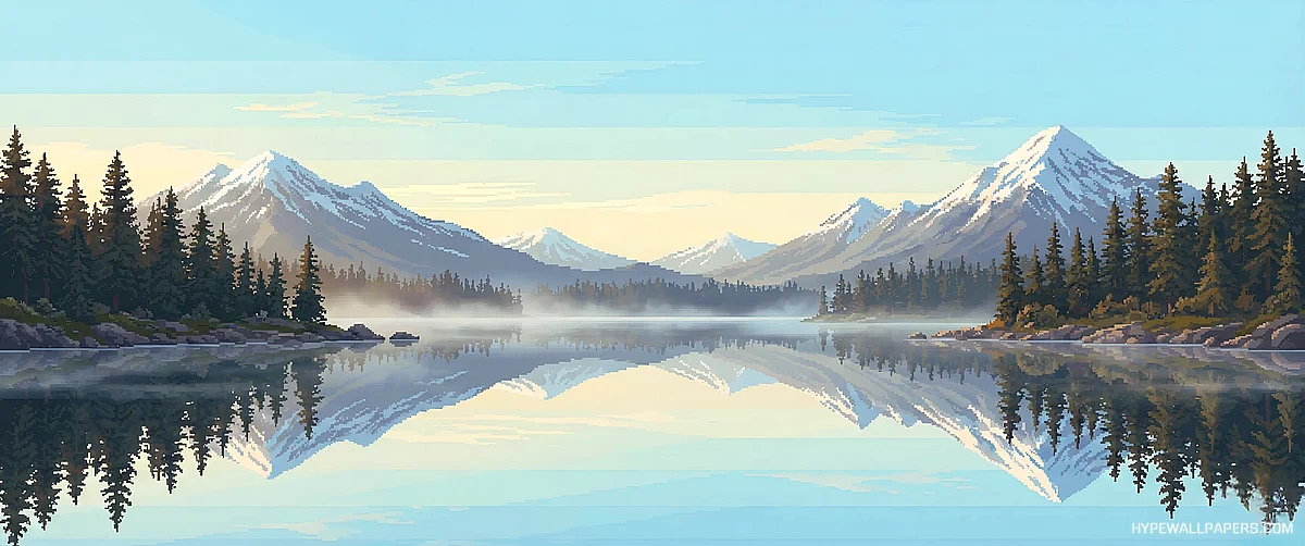 Calm Mountain Lake Reflection – Pixel World